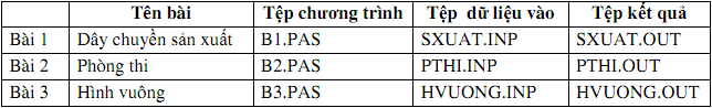 - Dữ liệu vào: từ tệp văn bản SXUAT.INP có dạng: