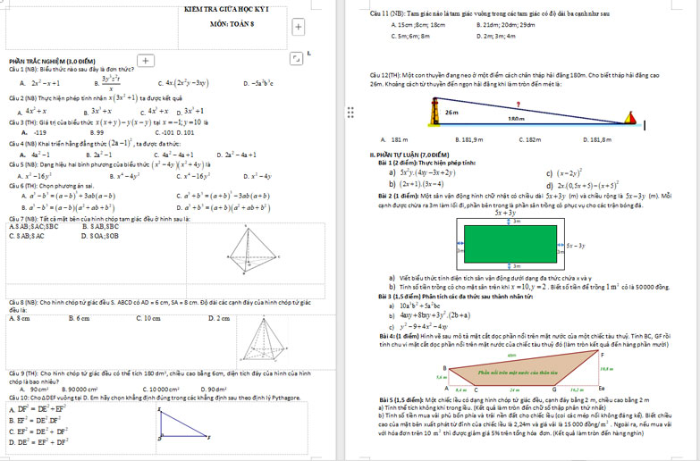 Đề kiểm tra giữa học kỳ 1 môn toán lớp 8