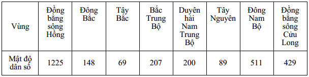 2. Cho bảng số liệu: Mật độ dân số Việt Nam năm 2006 phân theo vùng