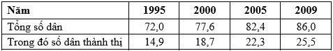 a) Tính tỉ lệ dân thành thị trong tổng số dân nước ta theo bảng số liệu trên.