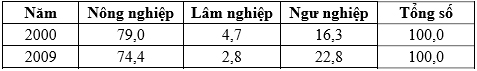 b) Nhận xét sự thay đổi cơ cấu giá trị sản xuất của khu vực I nền kinh tế nước ta năm 2009 so với năm 2000.