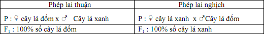 Câu 8: Năm 1909, Coren (Correns) đã tiến hành phép lai thuận nghịch trên cây hoa phần (Mirabilis jalapa) và thu được kết quả như sau: