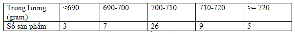 Giả sử trọng lượng của sản phẩm có phân phối chuẩn, với độ tin cậy 95%, trọng lượng trung bình sản phẩm nằm trong khoảng (gram) (lấy 2 số thập phân)