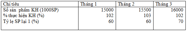 Tỷ lệ SP loại 1 cả quý là (%)(lấy 2 số thập phân):
