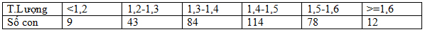 Câu 6: Kết quả điều tra trọng lượng của gà vịt sau 3 tháng nuôi: