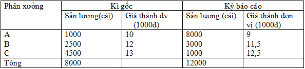 Do kết cấu sản lượng thay đối, làm cho giá thành trung bình kì báo cáo so với kì gốc giảm (%)