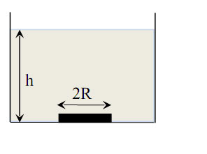 Bài 2. (3,0 điểm) Một đĩa thép hình trụ đồng chất có bán kính R = 4cm, khối lượng 500gam nằm ở đáy của một bể nước như hình vẽ. Biết độ sâu của nước trong bể là h = 0,5m, khối lượng riêng của nước là 1g/cm³, khối lượng riêng của thép là 7,8g/cm3 và áp suất khí quyển là 10⁵N/m². Tính lực cực tiểu cần đặt vào đĩa để nhấc (tách) đĩa khỏi đáy bể. |