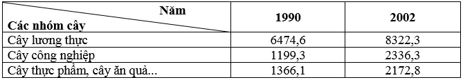 b. Từ bảng số liệu và biểu đồ đã vẽ, hãy nhận xét sự thay đổi tỉ trọng diện tích gieo trồng của các nhóm cây giai đoạn 1990 – 2002 và cho biết sự thay đổi này nói lên điều gì?