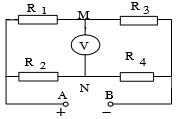 Biết R1 = 4 Ω ; R2 = 12 Ω ; R3 = 6 Ω ; R4 =3 Ω . Hiệu điện thế hai đầu đoạn mạch là UAB= 30V, Vôn kế có điện trở rất lớn.