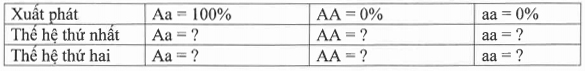 b. Nêu nguyên nhân của hiện tượng thoái hóa giống ở sinh vật khi xảy ra tự thụ phấn bắt buộc hoặc giao phối cận huyết? Giả sử một quần thể thực vật tự thụ phấn, ban đầu chỉ có kiểu gen Aa (Aa = 100%). Hãy kẻ bảng theo mẫu sau và điền tỉ lệ các kiểu gen Aa, AA, aa ở các thế hệ.