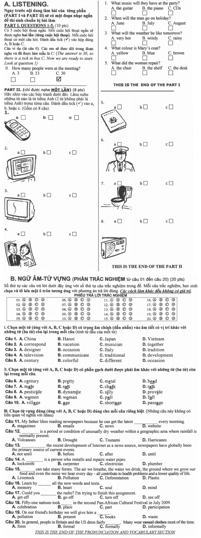 Đề thi tuyển sinh lớp 10 môn Tiếng Anh: