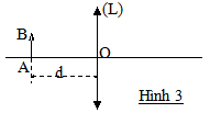 Cho hệ quang học như hình 3: (L) là thấu kính hội tụ có tiêu cự 30cm, vật AB cách thấu kính một khoảng d.