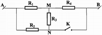 Cho mạch điện như hình vẽ: R1 = R2 = R3 = R4 = 3Ω; UAB = 15V