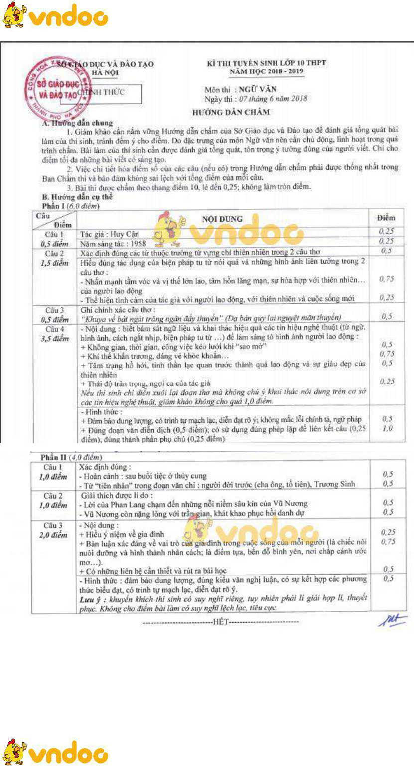 - Đáp án đề thi vào lớp 10 môn Văn Hà Nội năm 2019 New