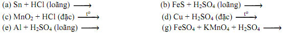 (h) Cho PbS vào dung dịch HCl (loãng). (i) Cho Na2SO3 vào dung dịch H2SO4 (dư), đun nóng.