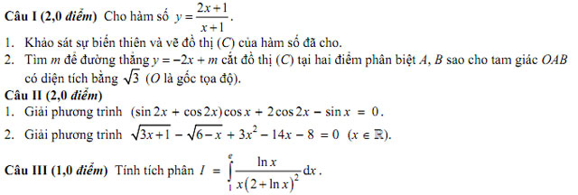 Đề thi và đáp án môn Toán khối B - kỳ thi đại học 2010