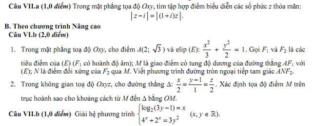 Thí sinh không được sử dụng tài liệu. Cán bộ coi thi không giải thích gì thêm.