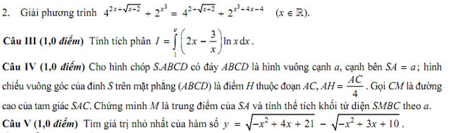 Thí sinh không được sử dụng tài liệu. Cán bộ coi thi không giải thích gì thêm.