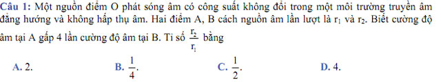 Câu 4: Một sợi dây đàn hồi căng ngang, đang có sóng dừng ổn định. Trên dây, A là một điểm nút, B là một điểm bụng gần A nhất, C là trung điểm của AB, với AB = 10 cm. Biết khoảng thời gian ngắn nhất giữa hai lần mà li độ dao động của phần tử tại B bằng biên độ dao động của phần tử tại C là 0,2 s. Tốc độ truyền sóng trên dây là