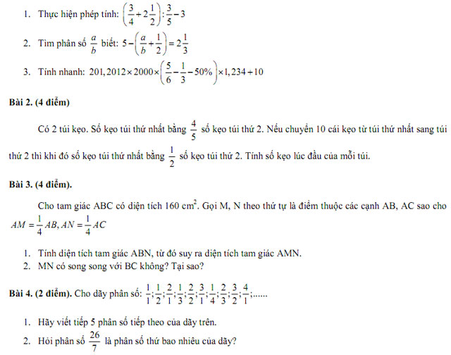 ĐỀ THI TOÁN LỚP 6 – TRƯỜNG GIẢNG VÕ 2011 – 2012