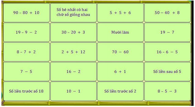 Bài thi số 1: Điền số thích hợp (100 điểm)
