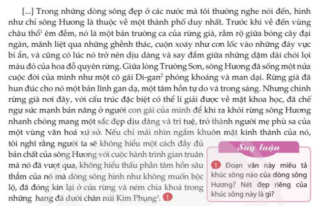 Đoạn văn này miêu tả khúc sông nào của dòng sông Hương?