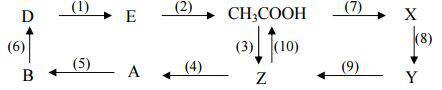 b. Viết các phương trình phản ứng thực hiện các chuyển đổi hoá học sau (mỗi mũi tên ứng với một phương trình phản ứng). Biết X, Y, Z là các muối; D là chất được dùng để kích thích quả mau chín và trong phân tử có chứa một liên kết kém bền.