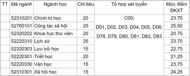 ĐH Khoa học Xã hội và Nhân văn xét tuyển đợt 2