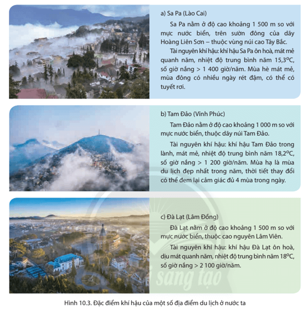 Câu hỏi trang 128 Địa Lí 8: Dựa vào hình 10.3 và thông tin trong bài, em hãy phân tích vai trò của khí hậu đối với phát triển du lịch ở một địa điểm du lịch nổi tiếng của nước ta.