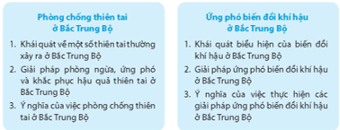 Dựa vào kiến thức đã học và thông tin tìm kiếm được, hãy trình bày vấn đề phòng chống thiên tai và ứng phó với biến đổi khí hậu ở Bắc Trung Bộ.