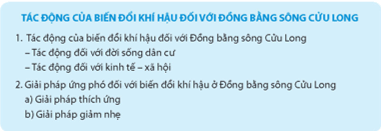 - Đề xuất các giải pháp ứng phó với biến đổi khí hậu ở Đồng bằng sông Cửu Long.