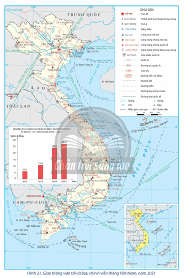 Câu hỏi trang 88 Địa Lí 12: Dựa vào hình 21 và thông tin trong bài, hãy trình bày sự phát triển và phân bố ngành bưu chính viễn thông ở nước ta.