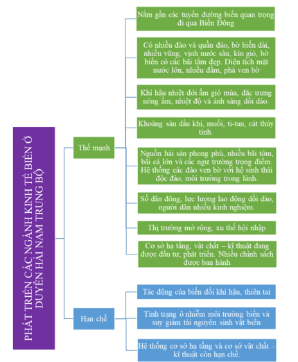 - Phân tích thế mạnh và hạn chế đối với phát triển các ngành kinh tế biển của Duyên hải Nam Trung Bộ.