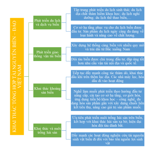 Luyện tập 1 trang 172 Địa Lí 12: Lập sơ đồ thể hiện tình hình khai thác tổng hợp tài nguyên biển – đảo Việt Nam.