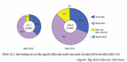 - Nhận xét sự thay đổi về sản lượng và cơ cấu nguồn điện sản xuất của nước ta năm 2010 và năm 2021.