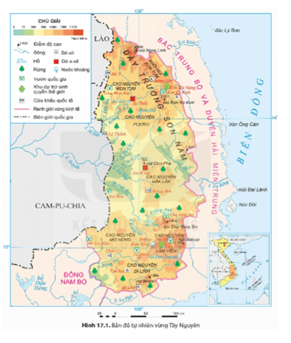Câu hỏi trang 187 Địa Lí 9: Dựa vào thông tin mục 1 và hình 17.1, hãy trình bày đặc điểm vị trí địa lí và phạm vi lãnh thổ của vùng Tây Nguyên.