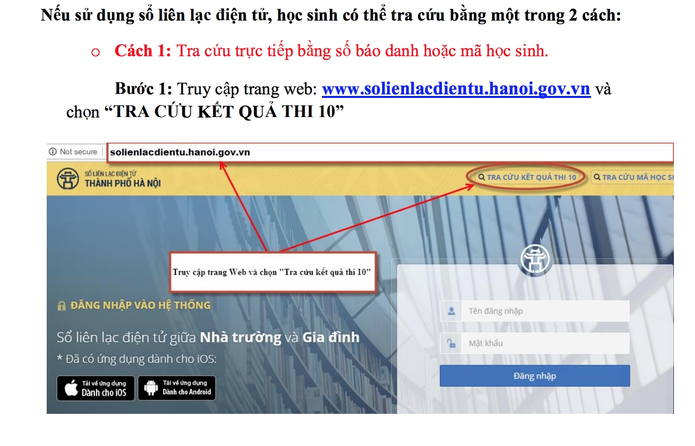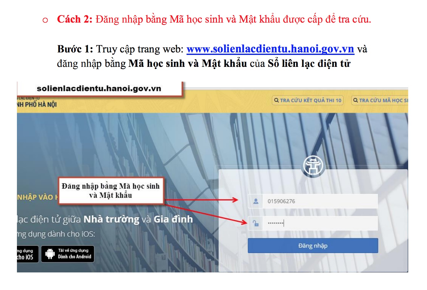 Sổ liên lạc điện tử học sinh qua địa chỉ www.solienlacdientu.hanoi.gov.vn;