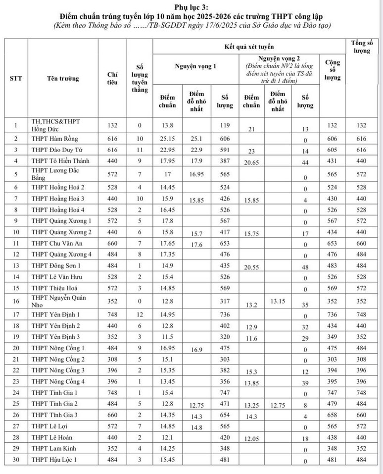 1. Điểm chuẩn vào 10 Thanh Hóa 2025
