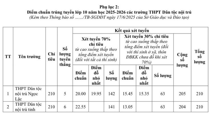 Điểm chuẩn vào lớp 10 THPT DTNT năm 2025: