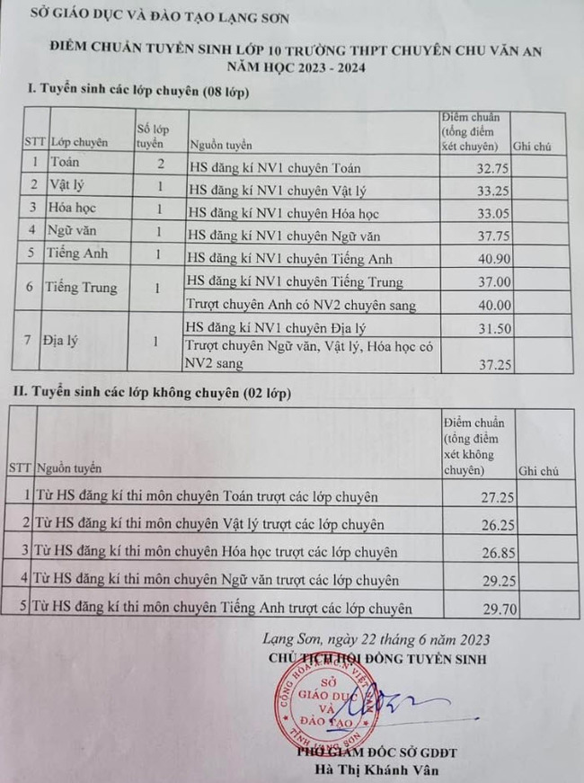 2. Điểm chuẩn vào 10 Lạng Sơn 2024