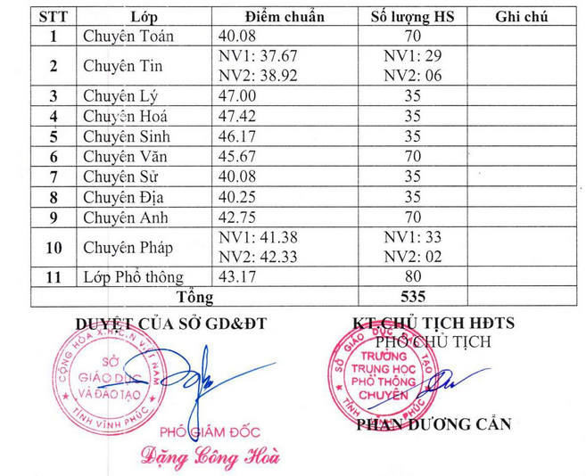 Điểm chuẩn vào lớp 10 THPT Chuyên Vĩnh Phúc năm 2024 đã được công bố ngày 13/6: