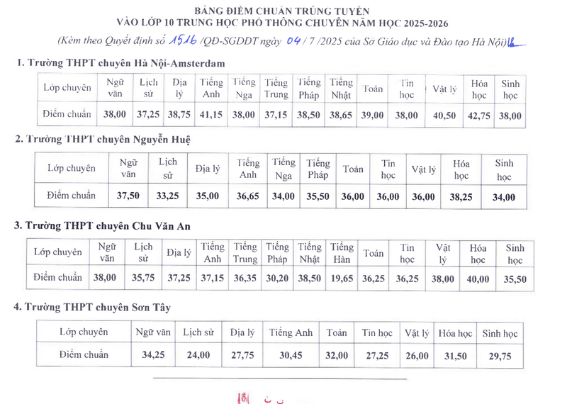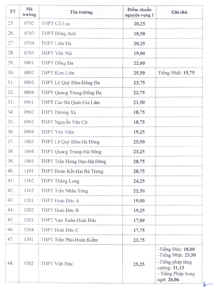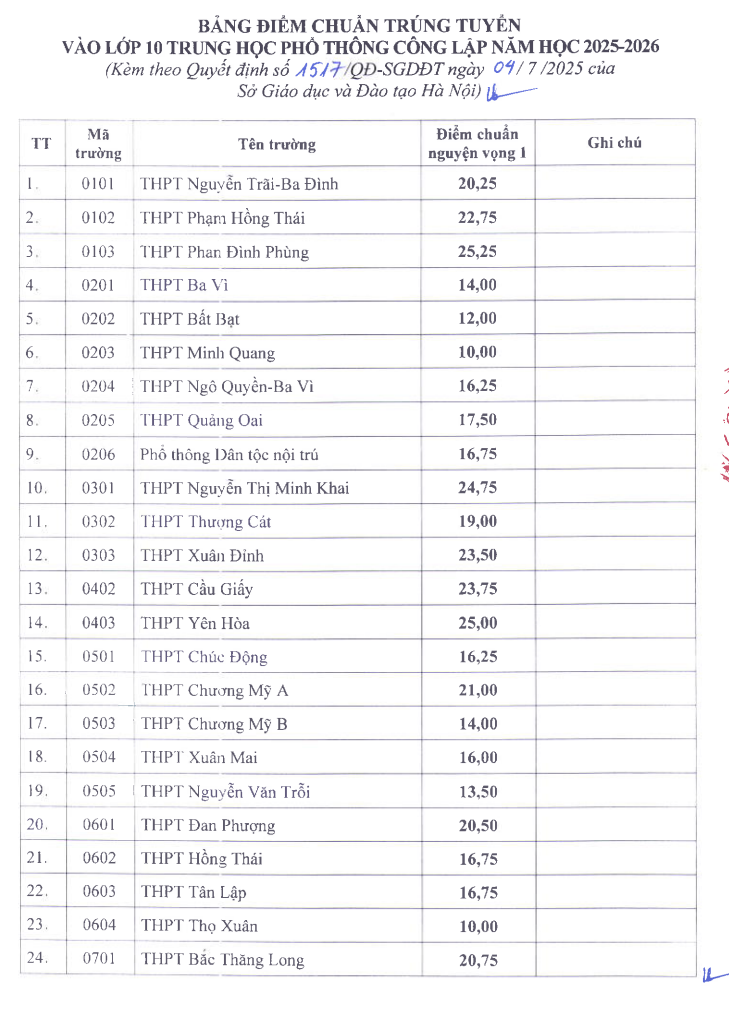 1. Điểm chuẩn lớp 10 Hà Nội 2025