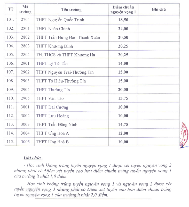 2. Điểm chuẩn lớp 10 Hà Nội 2024