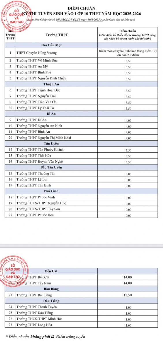Điểm chuẩn lớp 10 năm 2025 Bình Dương
