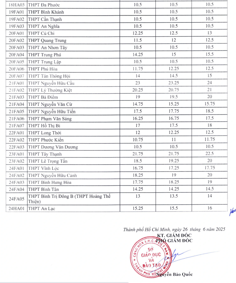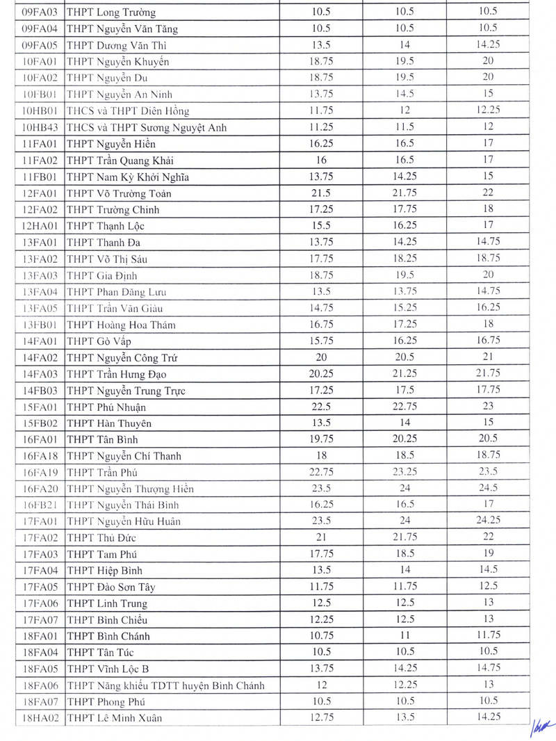 | THPT Phú Nhuận | 29,5 | 30 | 30,75 |