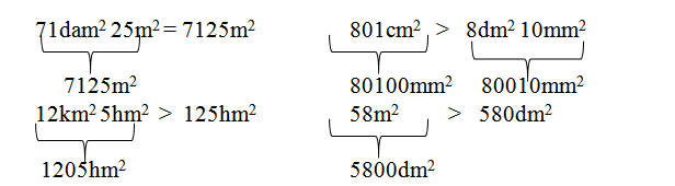 Điền dấu: > ; <; = 71dam2 25m2 .....7125m2