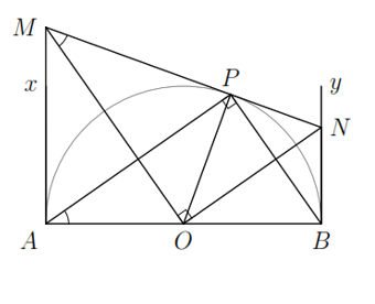 là hai tiếp tuyến với nửa mặt đường tròn tại
