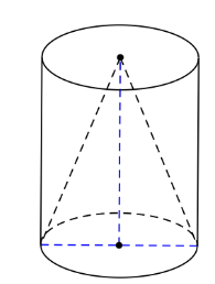 Ta thấy hình nón có bán kính đáy bằng bán kính đáy hình trụ và chiều cao bằng chiều cao hình trụ nên