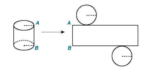 Chú ý: Từ một hình trụ, nếu ta cắt rời hai đáy và cắt theo một đường sinh nào đó rồi trải phẳng ra thì ta được một hình phẳng (gồm hai hình tròn và một hình chữ nhật) như hình vẽ. Hình này gọi là hình khai triển của hình trụ đã cho.