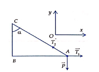 Ví dụ 2: Người ta treo một cái đèn trọng lượng P = 3N vào một giá đỡ gồm hai thanh cứng nhẹ AB và AC như hình vẽ.